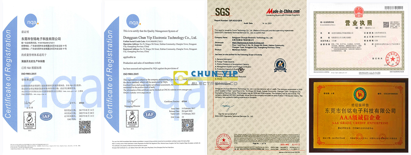公司已通過ISO9001:2015質量管理體系認證,SGS認證,AAA級信用企業。我們為全球客戶提供電容和電阻薄膜開關及按鍵面貼、觸摸薄膜開關、硅橡膠鍵、薄膜面板、PCB集成電路和FPC組合式薄膜開關,以及提供OEM和ODM薄膜開關系列產品的整體解決方案!